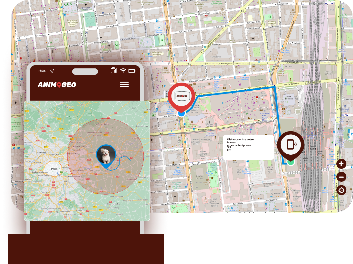 Offrez à votre compagnon une liberté en toute sécurité ! Avec Animogeo, définissez une zone de sécurité autour de votre domicile ou tout autre lieu de votre choix. Dès que votre animal sort de cette zone, vous recevez une alerte instantanée sur votre téléphone.